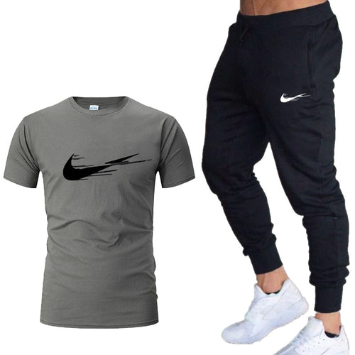 Casual tracksuit summer print suits sportwear men jogging fitness set clothing 2020 Men's sets t shirts + pants two pieces sets