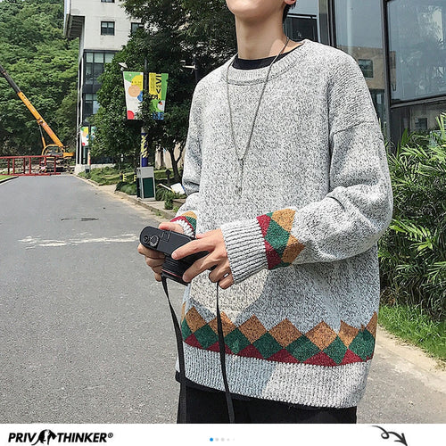 Privathinker Korean Patchwork Men's Knitted Sweaters Hip Hop Man Casual Loose Pullovers Streetwear Men Warm Tops Sweater